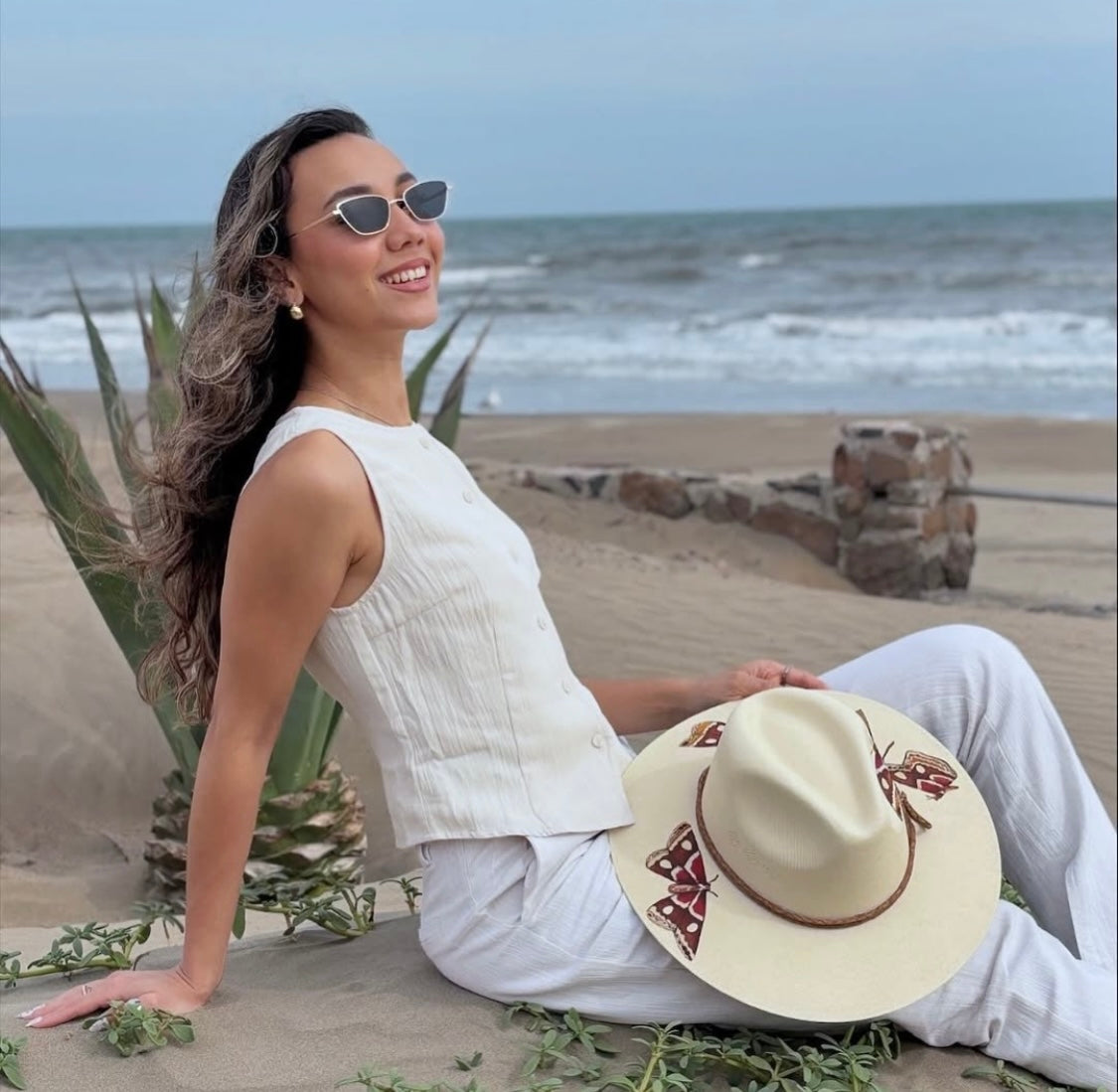 Sombrero mariposas rosas pastel / color invory pintado a mano