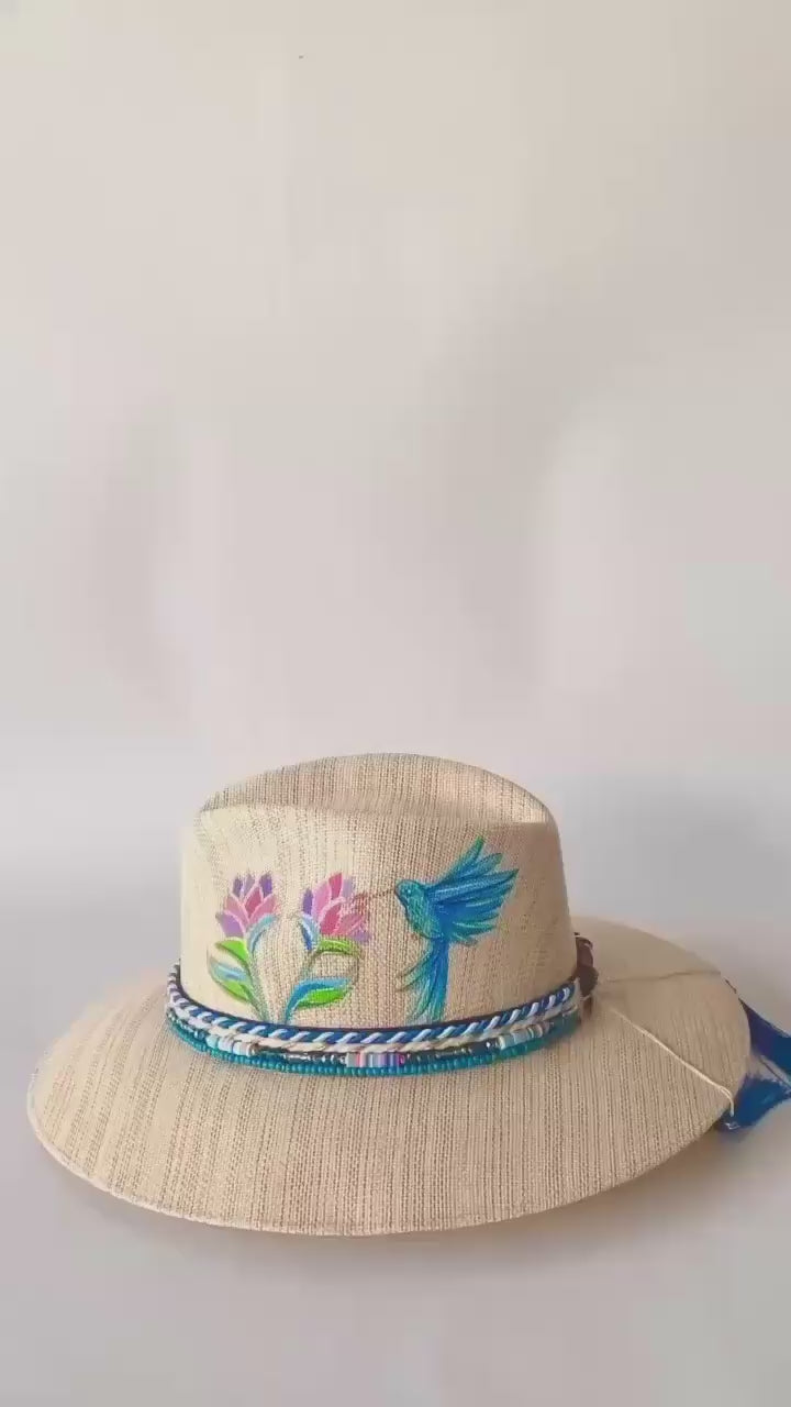 Sombrero colibrí con atrapa sueños / color negro pintado a mano